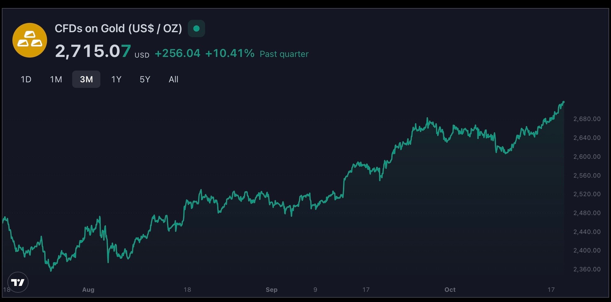 Gold Tops $2,700 A Historic All-Time High as Stock Market records continue